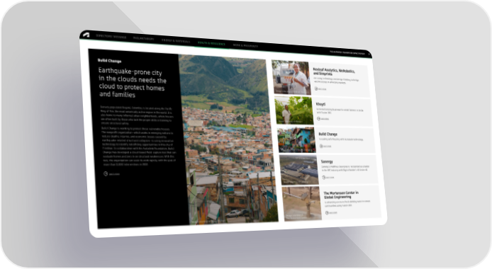 DIRECTORS' MESSAGE PHILANTHROPY ENERGY & MATERIALS HEALTH & RESILIENCE WORK & PROSPERITY FY22 AFY22 AUTUTODESK FOUNDODESK FOUNDAATION IMPTION IMPAACT REPORCT REPORTT 77 Build Change Nexleaf Analytics, WeRobotics, and Simprints are using technology and design thinking to bridge Earthquake-prone city vaccine access in emerging markets. in the clouds needs the Learn more cloud to protect homes Image courtesy of Nexleaf Analytics and families Kheyti is revolutionizing business for small farmers in India Densely populated Bogotá, Colombia, is located along the Pacific with Fusion 360. Ring of Fire, the most seismically active region in the world. It is Learn more also home to many informal urban neighborhoods, where houses Image courtesy of Kheyti are often built by those who lack the proper skills or training to ensure structural safety. Build Change is working to protect these vulnerable houses. Build Change The nonprofit organization—which works in emerging nations to reduce deaths, injuries, and economic losses caused by is scaling safe housing with Autodesk technology. earthquake-related structural collapses—is using innovative technology to identify retrofitting opportunities in this city of Learn more 7 million. In collaboration with the Autodesk Foundation, Build Image courtesy of Build Change Change has developed a cloud-based field-capture tool that can evaluate homes and zero in on structural weaknesses. With this tool, the organization can scale its work rapidly, with the goal of Sanergy more than 11,000 interventions in 2022. Sanergy’s Matthieu Desvignes is recognized as a leader Learn more in the AEC industry with Digital Builder’s 40 Under 40. Learn more Image courtesy of Sanergy The Mortenson Center in Global Engineering is enhancing access to fresh drinking water in remote communities using Fusion 360. Image courtesy of Learn more Image courtesy of Build Change The Mortenson Center