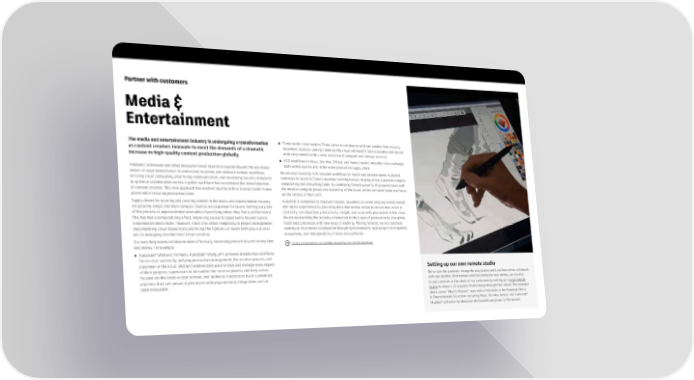 Partner with customers Media & Entertainment The media and entertainment industry is undergoing a transformation ● Flame on the cloud enables Flame artists to collaborate with one another from virtually as content creators innovate to meet the demands of a dramatic anywhere. Studios running Flame on the cloud can benefit from a scalable and secure increase in high-quality content production globally. work environment with a wide selection of compute and storage services. ● USD workflows in Maya, 3ds Max, Bifrost, and Arnold enable smoother data exchange Pandemic lockdowns and other measures forced studios to expand beyond the traditional both within studios and in the wider production supply chain. model of large teams based in centralized locations and embrace remote workflows. We are also investing in AI-assisted workflows for media and entertainment. Autodesk Utilizing cloud computing, prioritizing communication, and increasing security standards continues to invest in Flame’s machine learning toolset, helping artists automate complex to optimize collaboration across a global workforce has accelerated the transformation compositing and retouching tasks. By combining Flame's powerful AI-powered tools with of content creation. This new approach has enabled studios to hire diverse talent in new the massive compute power and scalability of the cloud, artists can work faster and focus places while reducing production costs. on the artistry of their craft. Supply chains for sourcing and creating content in the media and entertainment industry Autodesk is committed to empower anyone, anywhere, to create amazing entertainment are growing longer and more complex. Studios are desperate for talent, farming out parts and media experiences by providing tools that enable artists to deliver new levels of of the process at unprecedented rates while diversifying where they find qualified talent. creativity, collaboration, productivity, insight, and scale with production in the cloud. This has had a democratizing effect, improving access to opportunity beyond typical We are accelerating the industry’s transition to the future of production by disrupting concentrated media hubs. However, it has also added complexity to project management. traditional processes with new ways of working. Moving forward, we will continue Implementing cloud-based tools and hiring the right mix of talent both play a pivotal working to drive better collaboration through open standards, open project development role in managing decentralized talent creation. ecosystems, and interoperability of tools and platforms. Our tools help teams collaborate more effectively, increasing productivity and saving time Six Key Components to Successfully Navigating Your Remote Workflows and money. For example: ® ® ® ● Autodesk ShotGrid (formerly Autodesk Shotgun ) software streamlines workflows for creative studios by unifying production management, the creative process, and pipelines—in the cloud. ShotGrid enables producers to track and manage every aspect Setting up our own remote studio of their projects, supervisors to streamline the creative process and keep artists focused on the creative task at hand, and technical directors to build customized We’ve seen the pandemic change the way studios work and how artists collaborate pipelines that suit unique studio needs with plug-and-play integrations and an with one another. With remote work becoming the new normal, we decided open ecosystem. to put ourselves in the shoes of our customers by setting up a small remote studio to create a 3D sequence from concept through final render. The animated short, called “Mkali's Mission,” uses each of the tools in the Autodesk Media & Entertainment Collection—including Maya, 3ds Max, Arnold, and Autodesk® Mudbox® software—to showcase the breadth and power of the toolset.