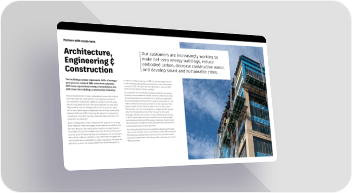 Partner with customers Architecture, Our customers are increasingly working to Engineering & make net-zero energy buildings, reduce embodied carbon, decrease construction waste, Construction and develop smart and sustainable cities. The buildings sector represents 38% of energy- To achieve carbon neutrality by 2050, all new buildings and 20% and process-related GHG emissions globally: of the existing building stock would need to be zero-carbon-ready 28% from operational energy consumption and as soon as 2030. This goal requires spending to triple by 2030 9 4 relative to the last half-decade averages. 10% from the buildings construction industry. Our customers are increasingly working to make net-zero energy Reducing operational energy consumption in new and existing buildings, reduce embodied carbon, decrease construction waste, buildings remains a high priority for Autodesk and many of and develop smart and sustainable cities. Globally, commitment our customers. Tackling the embodied carbon in infrastructure to increasing green building efforts remains strong: 28% of CEOs and building materials also offers great potential for near-term in the construction industry planned to do the majority of their 10 improvement, since building materials will account for about projects green in 2021, and 42% plan to do so in the future. half of the climate impacts of projected new building construction The business case for building green is compelling: The average 5 reduction in operating costs in the first year for new green between 2020 and 2050. Reducing the impacts of construction buildings is 10.5%, and average five-year operating cost savings is essential, since that industry consumes more than half of all is 16.9%; green renovations and retrofits have an even stronger extracted raw materials.6 performance at 11.5% and 17% average reductions. Owners report Global demographic trends compound the urgency of reducing that new green buildings and renovation/retrofit projects increase these impacts. As the world population continues to urbanize over 11 building asset value by more than 9%. the next 30 years, the construction industry will need to build Providing automation tools to support these objectives affordably 7 an average of 13,000 buildings every day and 700,000 miles of ® 8 and at scale is central to our sustainability efforts. The Autodesk road per year. Industry demand will continue to rise for solutions Architecture, Engineering & Construction (AEC) Collection and that enable architects, engineers, and contractors to support this Autodesk Construction Cloud® help enable customers to achieve rapid growth more sustainably by improving energy and materials these outcomes. productivity while managing embodied carbon thoughtfully.